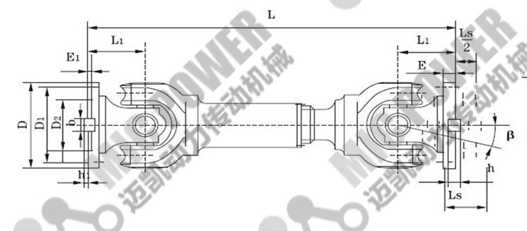 SWP型萬(wàn)向聯(lián)軸器,十字軸軸承座為剖分式,是考慮軸承是萬(wàn)向聯(lián)軸器中的易損件,將軸承壓蓋制成剖分,就是為了便于更換軸承。但壓蓋螺栓容易松動(dòng)。根據(jù)中間軸的結(jié)構(gòu)及軸叉的連接形式不同,共有7種型式:A型----有伸縮長(zhǎng)式萬(wàn)向聯(lián)軸器, B型----有伸縮短式萬(wàn)向聯(lián)軸器, C型----無(wú)伸縮短式萬(wàn)向聯(lián)軸器, D型----無(wú)伸縮長(zhǎng)式萬(wàn)向聯(lián)軸器, E型----有伸縮雙法蘭長(zhǎng)式萬(wàn)向聯(lián)軸器, F型----大伸縮長(zhǎng)式萬(wàn)向聯(lián)軸器, G型----有伸縮超短式萬(wàn)向聯(lián)軸器。